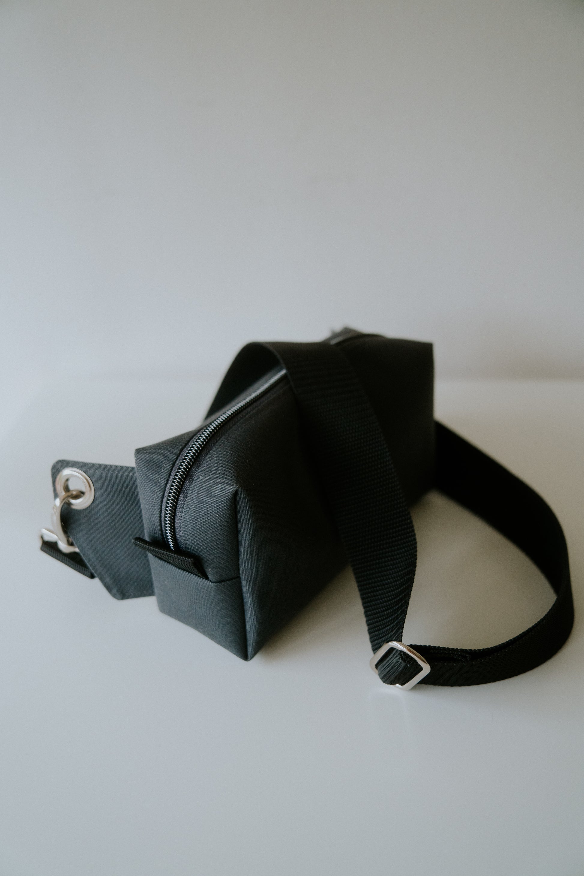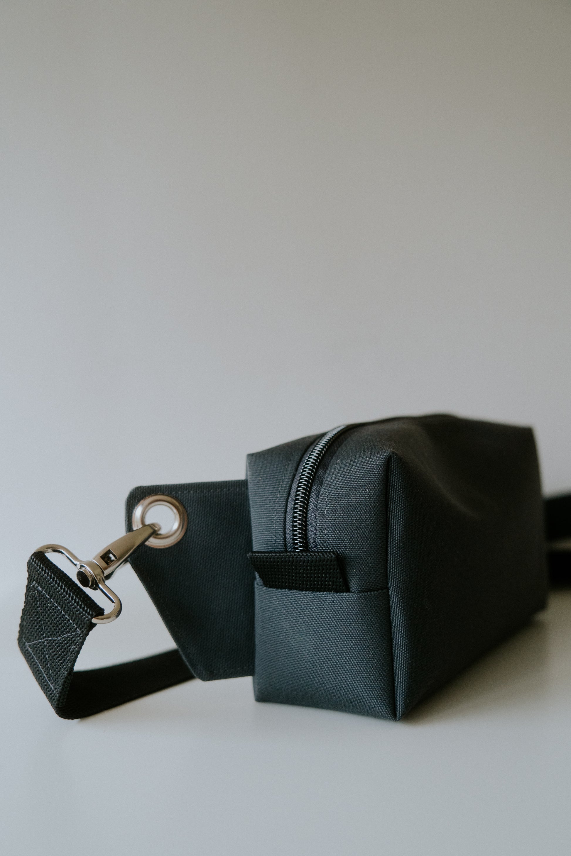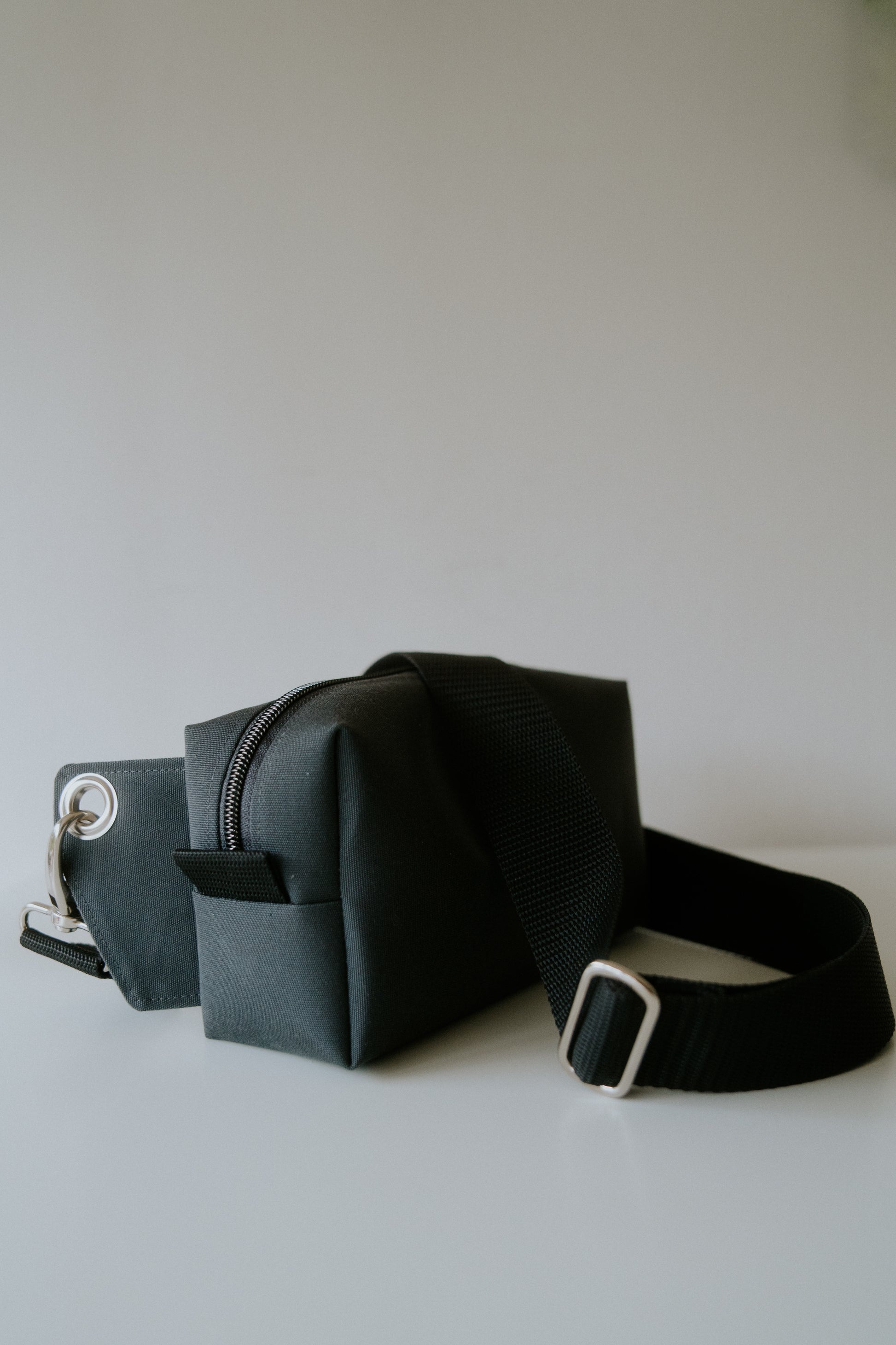 Kompakte, kleine Umhängetasche aus grauem Persenningstoff mit großem Fassungsvermögen. Perfekte Ergänzung zum Rucksack, weil alles Wichtige darin Platz findet. Mit einer Größe von ca. 15 x 15 cm fasst sie ein Portemonnaie, ein Kreditkartenetui, ein Handy (sicher: iPhone 13Pro), eine Brille, Schlüssel, Kamm und für alle, die möchten, Schminke und einen Lippenstift. Verschlossen wird die Tasche mit einem anthrazitfarbenen Reißverschluss. Der 4cm breite Schultergurt ist in der Länge verstellbar. So lässt sich die Tasche lässig über der Schulter, Crossbody oder auf der Hüfte tragen.